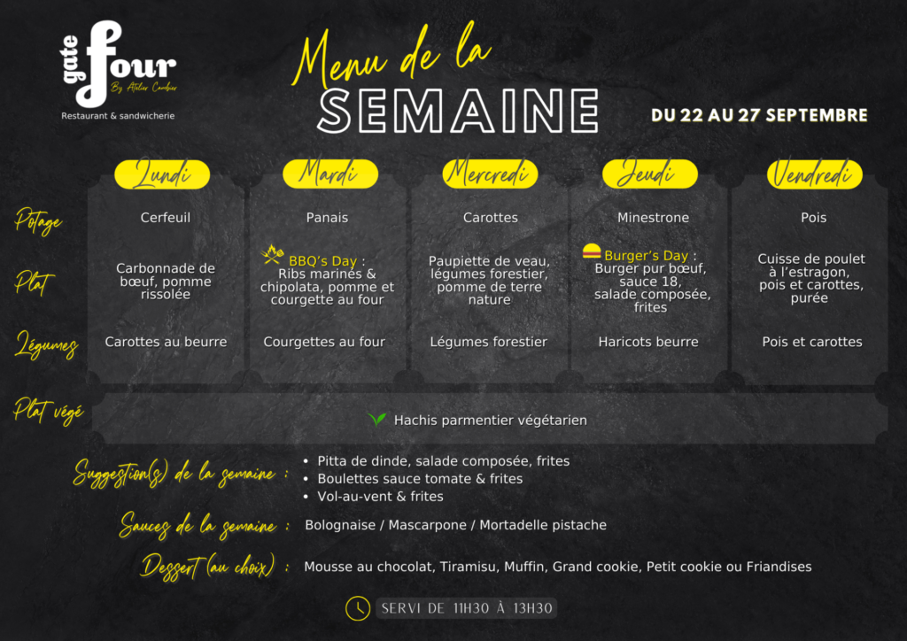 Menu de la semaine – Gate Four Gosselies